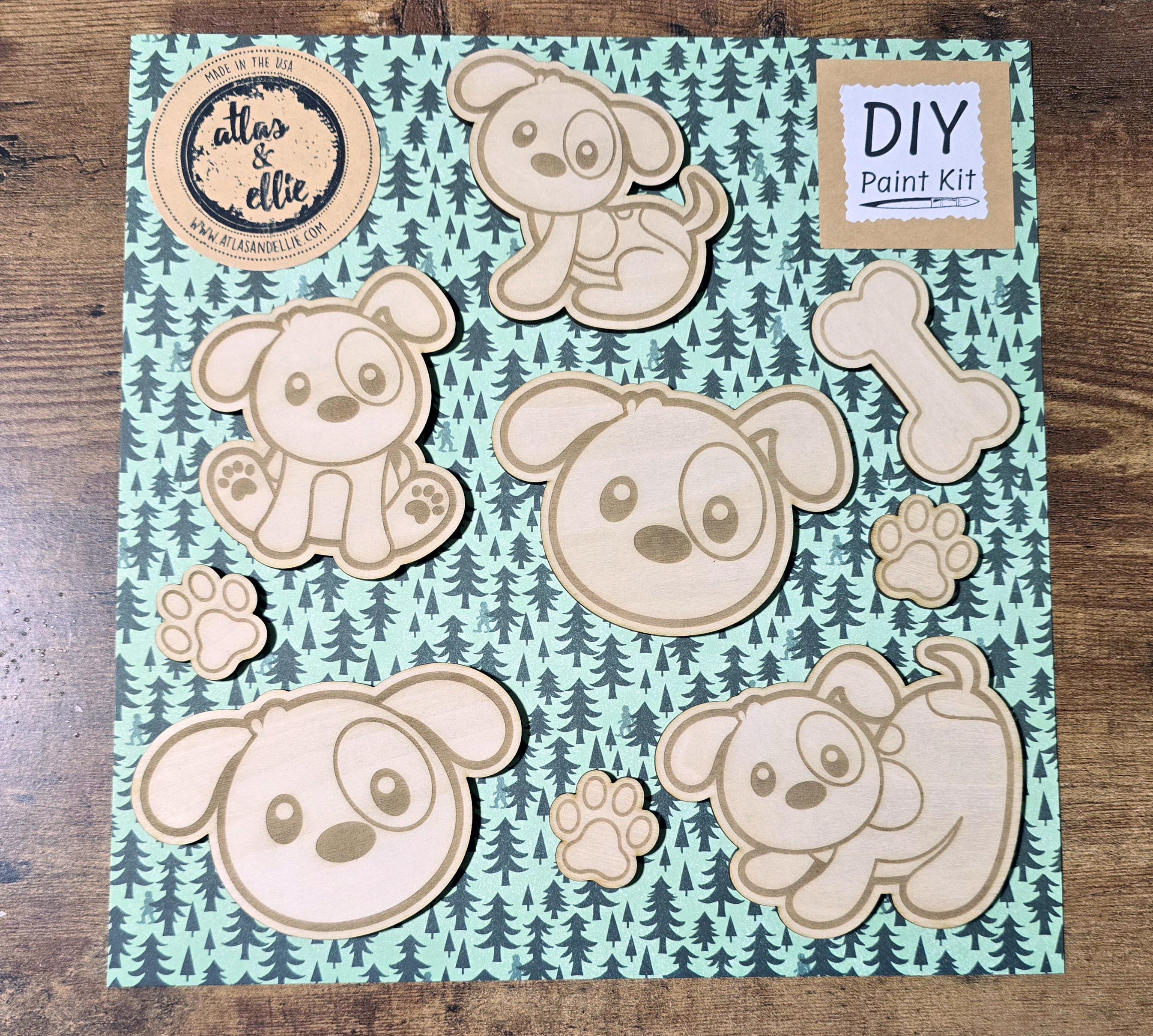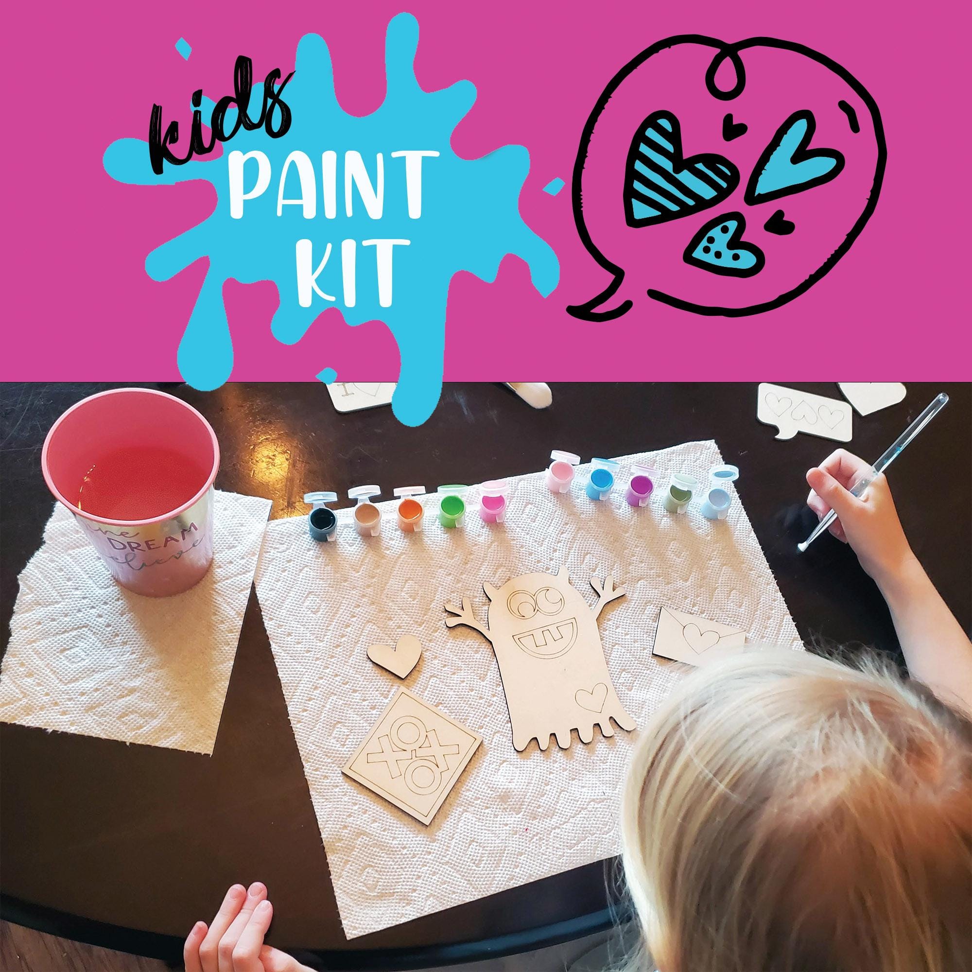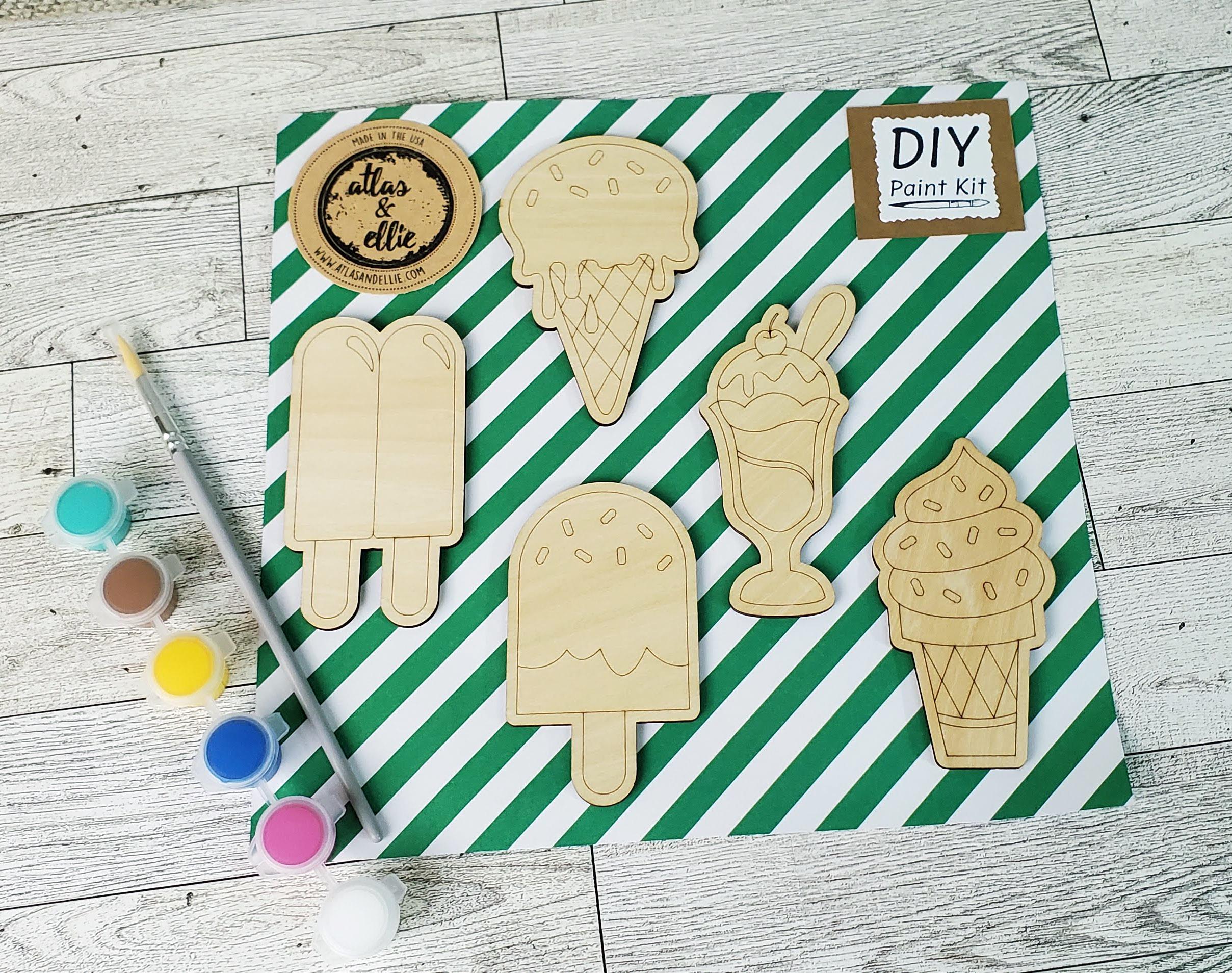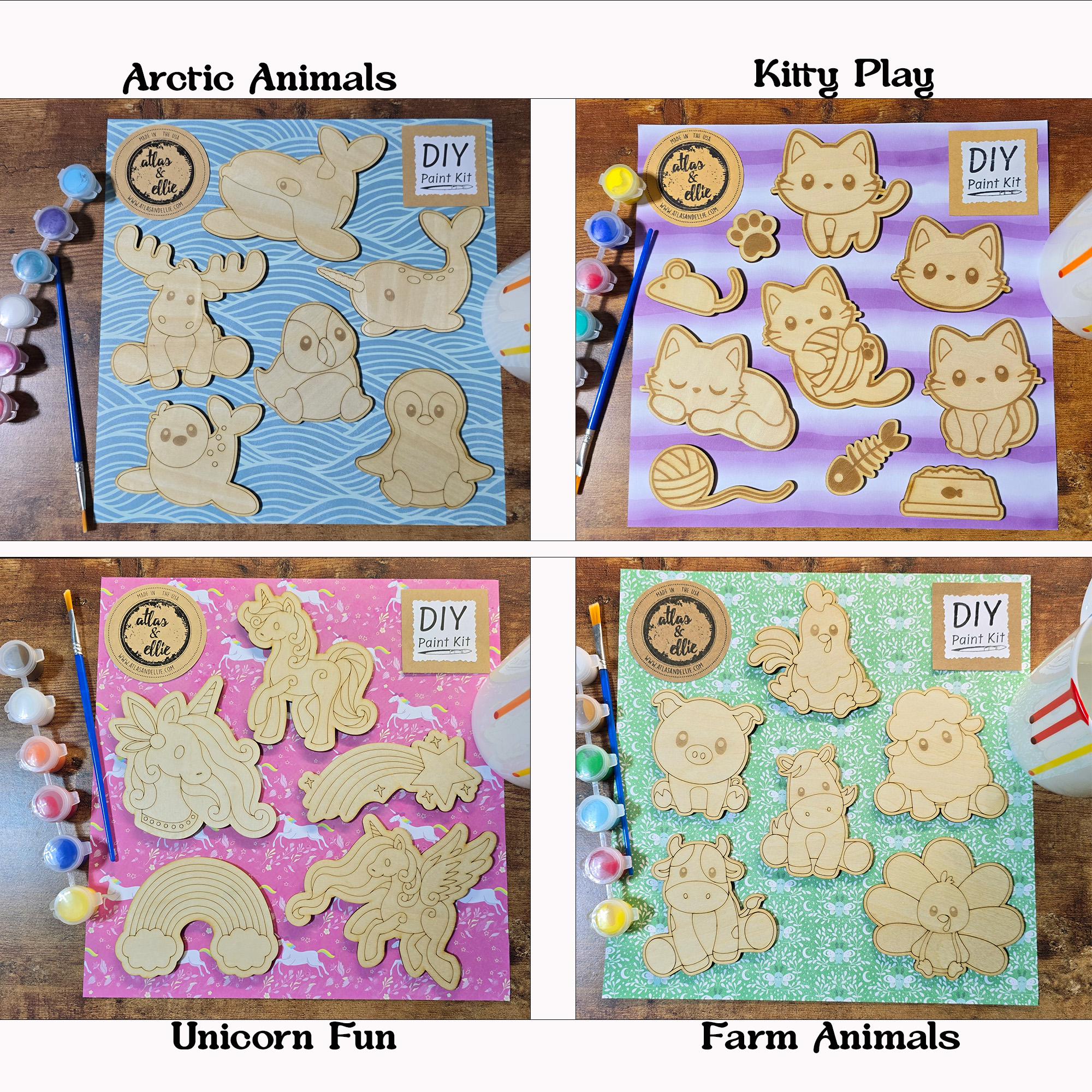 Each Kit includes - - 5-6 wooden pieces -1 paint brush -5 paint colors (paint set colors may vary based on availability)