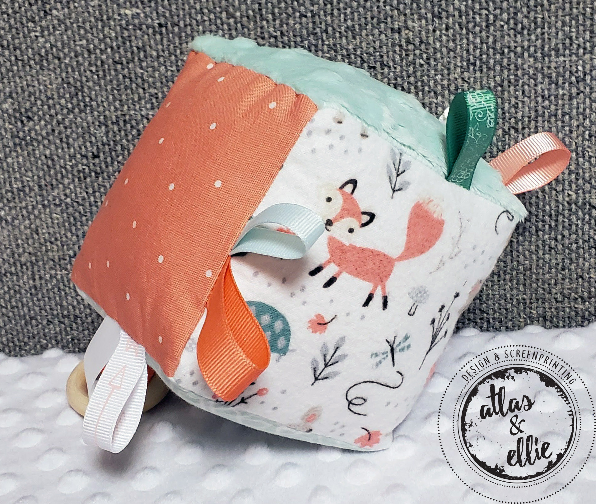 Soft baby block, Sensory baby toy, teething toy, sensory block, baby fabricblock, woodland nursery, activity cube, fox theme, adventure baby